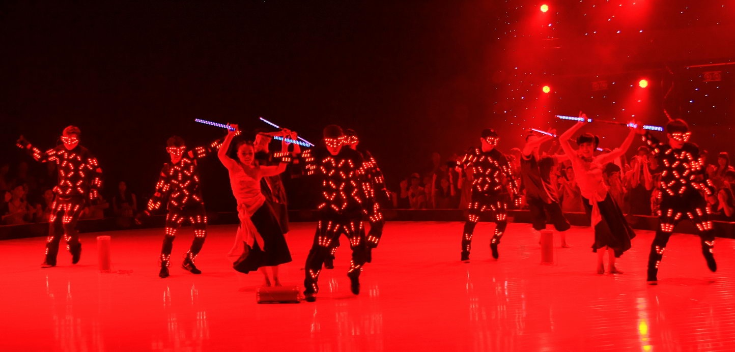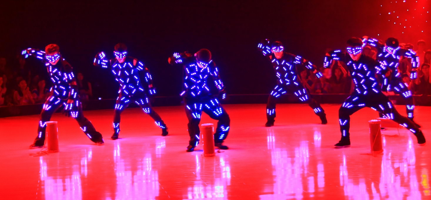 Trong khi đó, 218 lại hấp dẫn tất cả bằng công nghệ hiện đại. Tiết mục led dance tuần này được nhóm đầu tư lập trình bài bản và bắt mắt hơn rất nhiều. Bên cạnh đó, nhóm cũng bắt đầu tiếp thu những ý kiến đóng góp từ ban giám khảo khi chú ý đến phần nhảy nhiều hơn. |