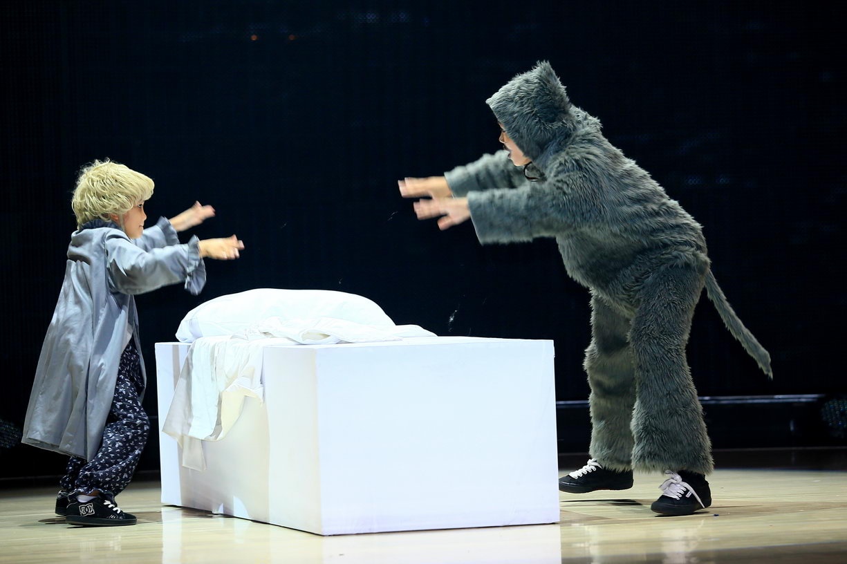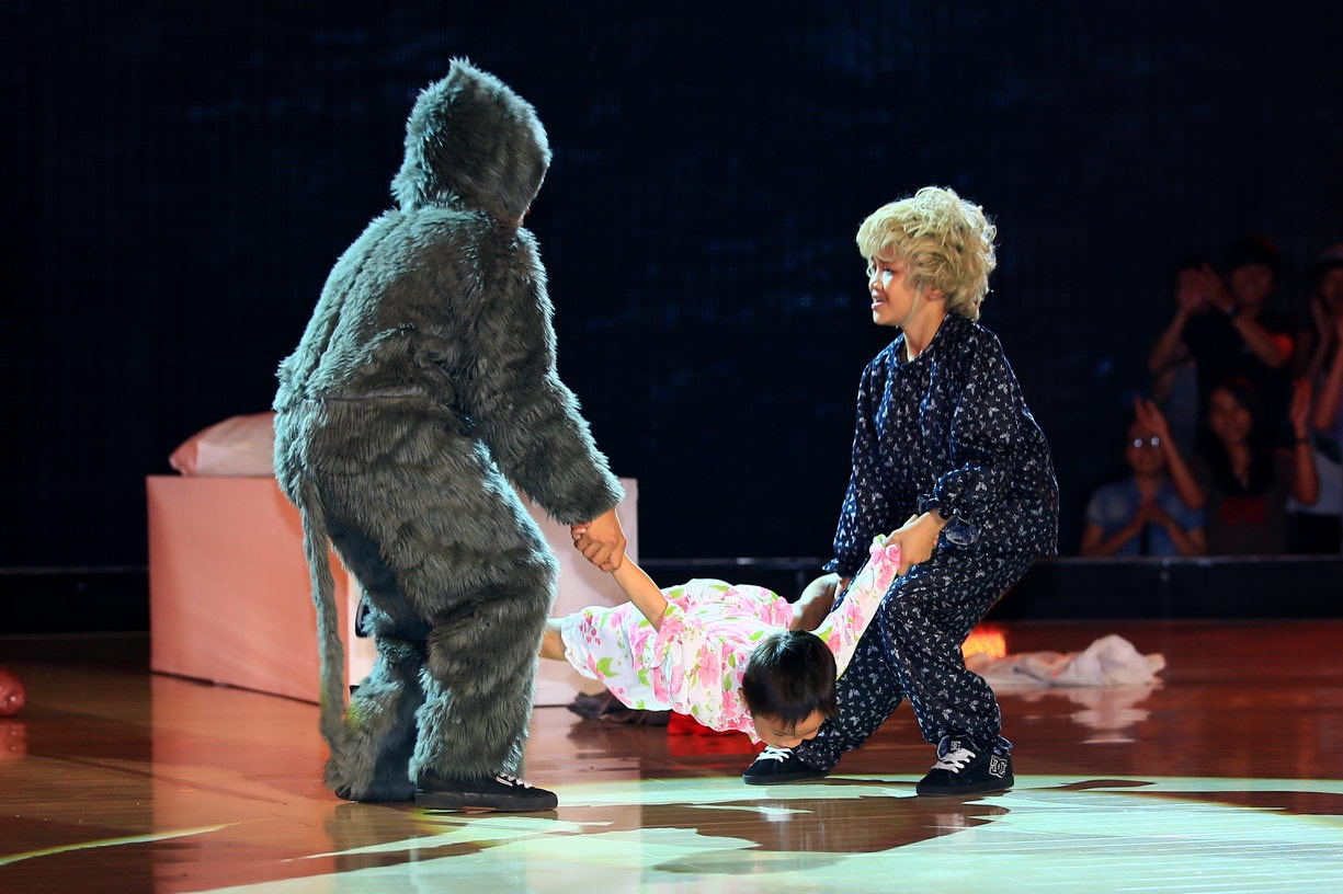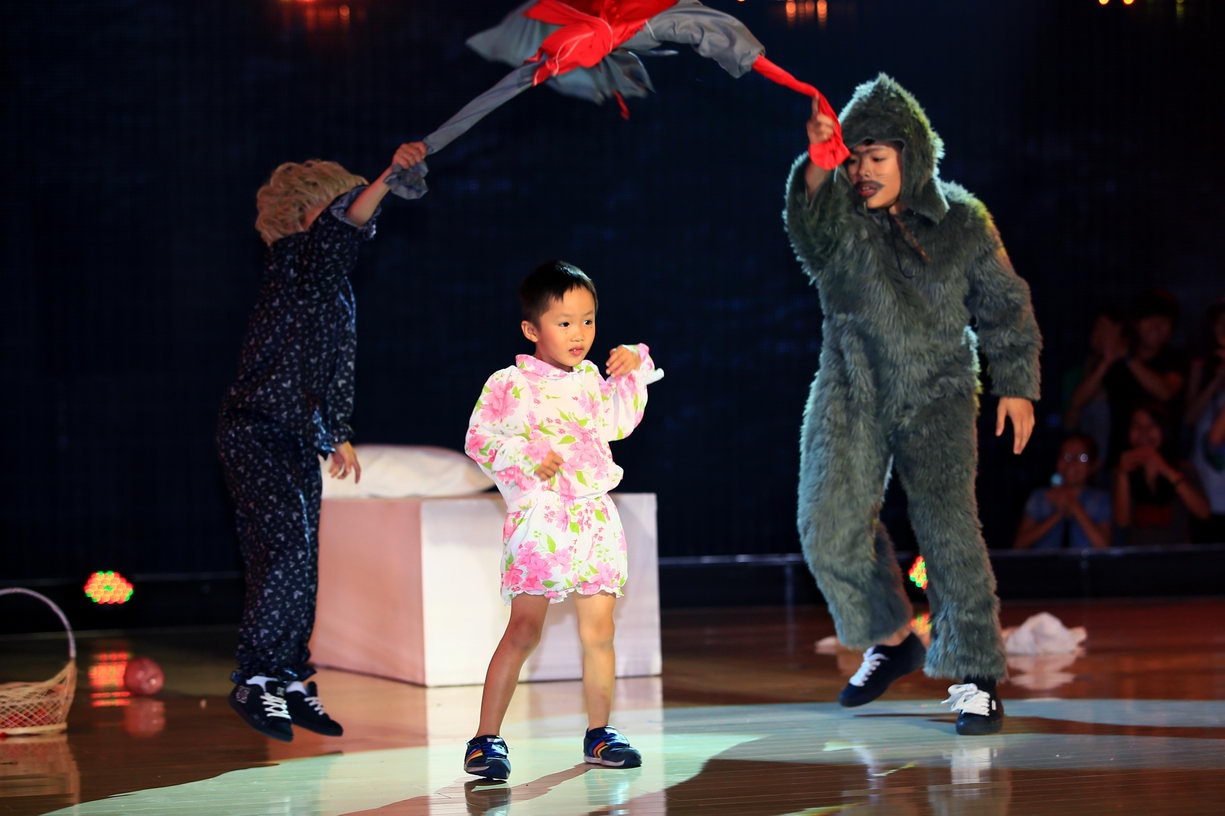 Ở nhóm còn lại, Ba thiên thần lại khiến tất cả phải vỗ tay không ngừng vì tiết mục dự thi quá dễ thương. Câu chuyện Cô bé quàng khăn đỏ và cái kết hoàn toàn mới mẻ được nhóm thể hiện sống động, vui tươi, hài hước qua từng bước nhảy. |