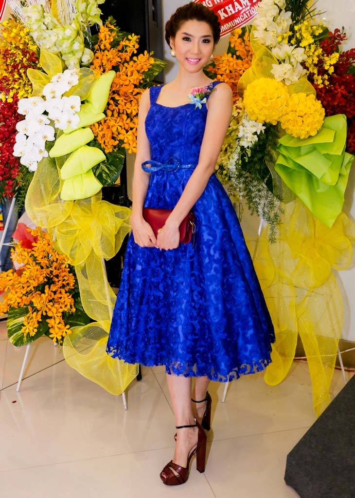 | Ngọc Quyên cũng xinh xắn, trẻ trung với đầm xòe xanh. |