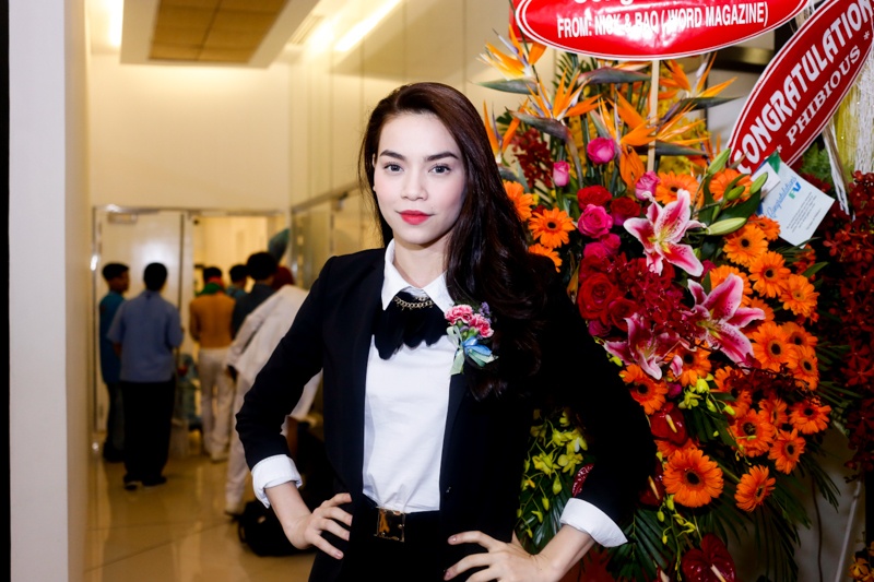 | Hồ Ngọc Hà cá tính với quần tây, vest đen. |