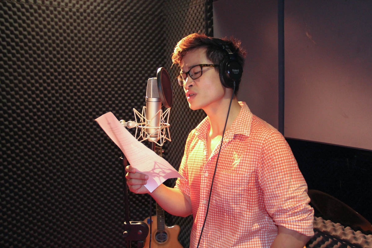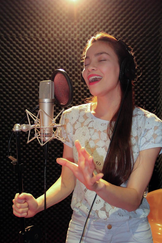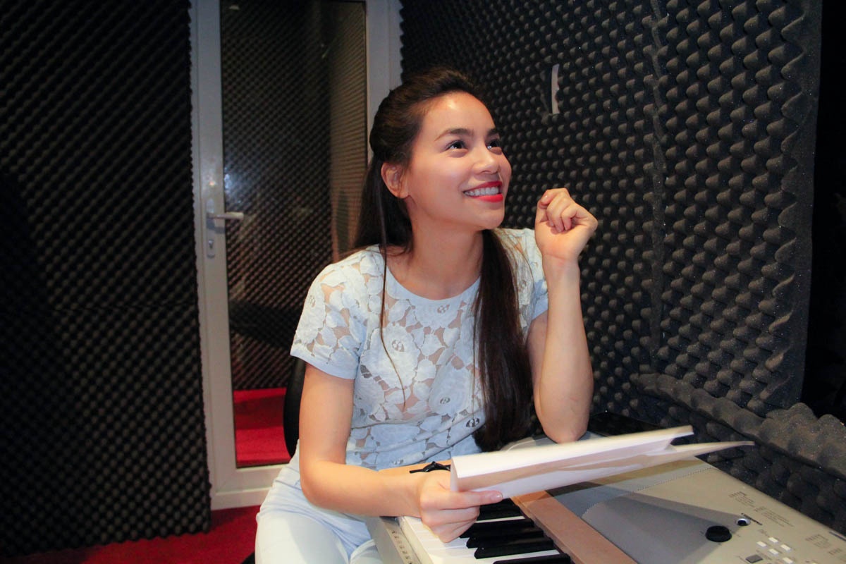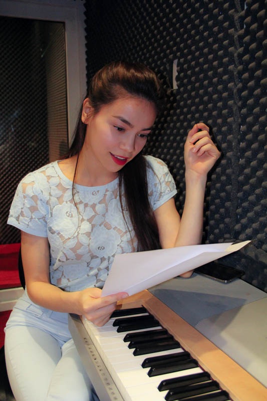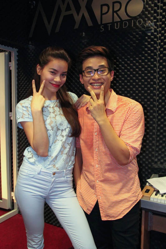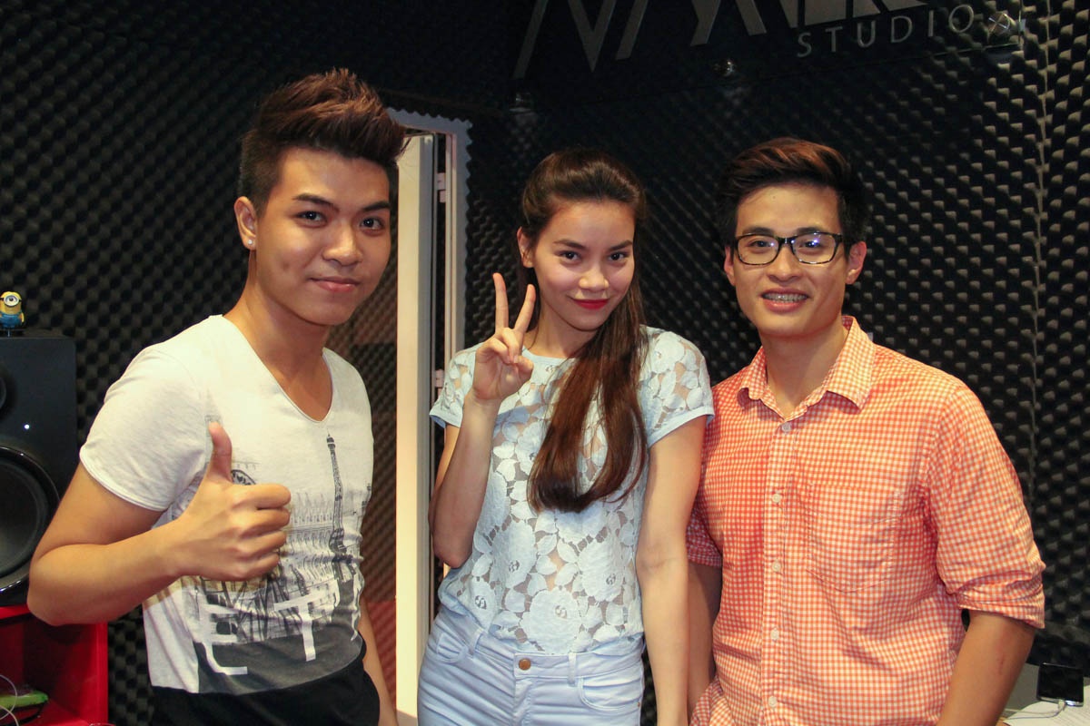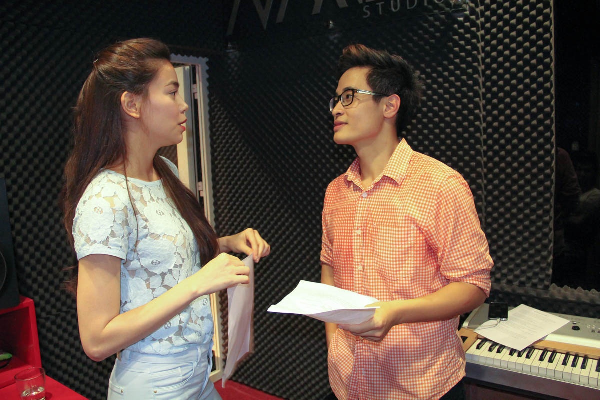 Hà Hồ giản dị trong phòng thu cùng Hà Anh Tuấn