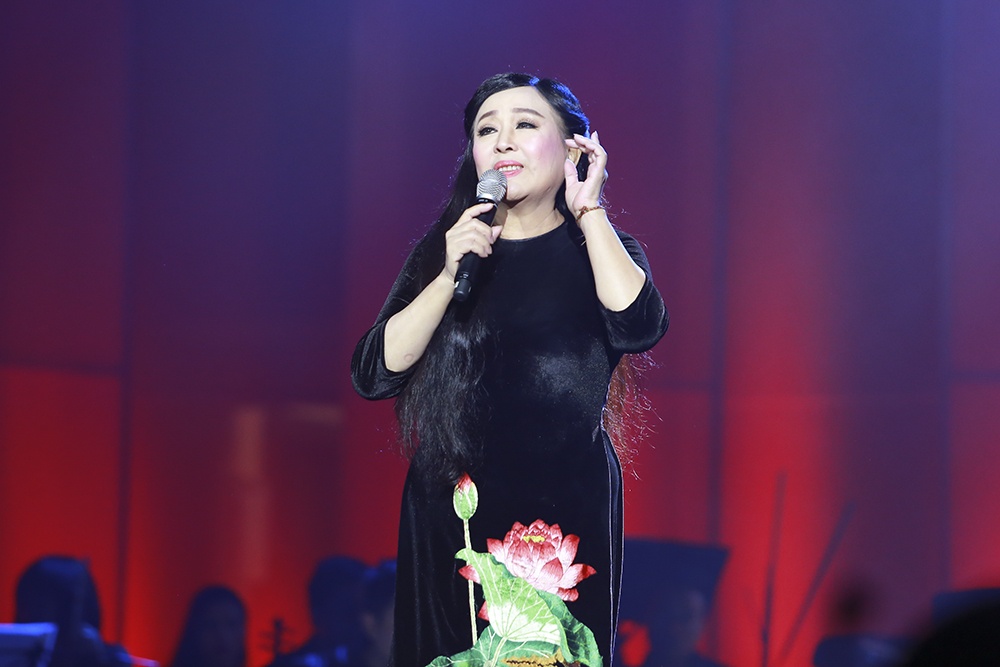 | Nghệ sĩ Thu Hiền xúc động khi thể hiện những ca khúc của cố nhạc sĩ An Thuyên đã gắn với sự nghiệp của bà. Ảnh: HBN |