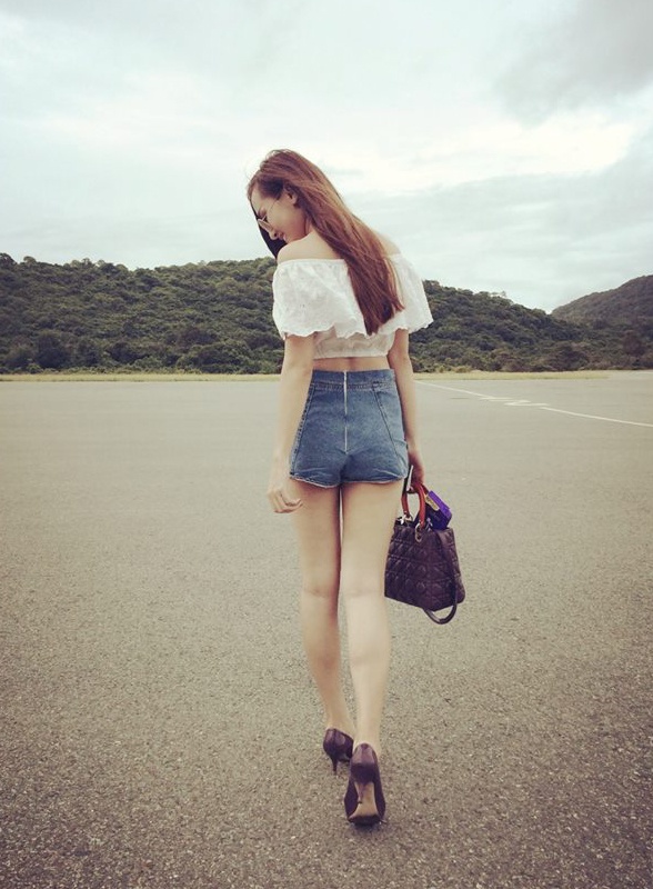 | Kelly Tú Anh cũng có thời gian nghỉ lễ 2/9 cùng những người bạn thân. Hot girl mặc áo trễ vai chất ren nữ tính, kết hợp cùng quần shorts ngắn năng động. |