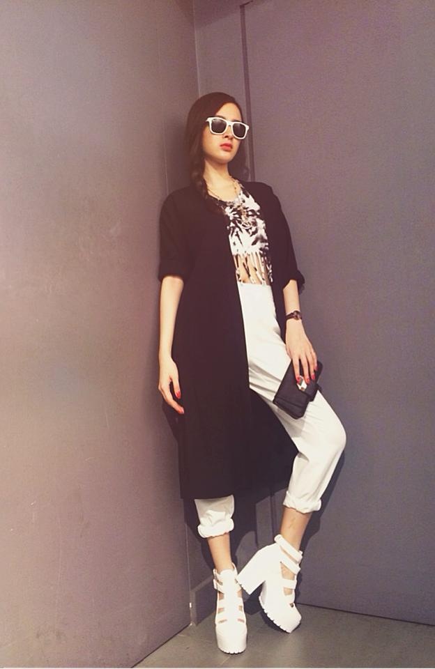 | "Nữ hoàng thị phi" Phương Trinh đổi phong cách với trang phục cá tính, cô diện áo crop-top kèm quần baggy, áo khoác cardigan và giày sandals cao gót hầm hố. Trên trang cá nhân, người đẹp khoe mình đang thử nghiệm phong cách mới. |