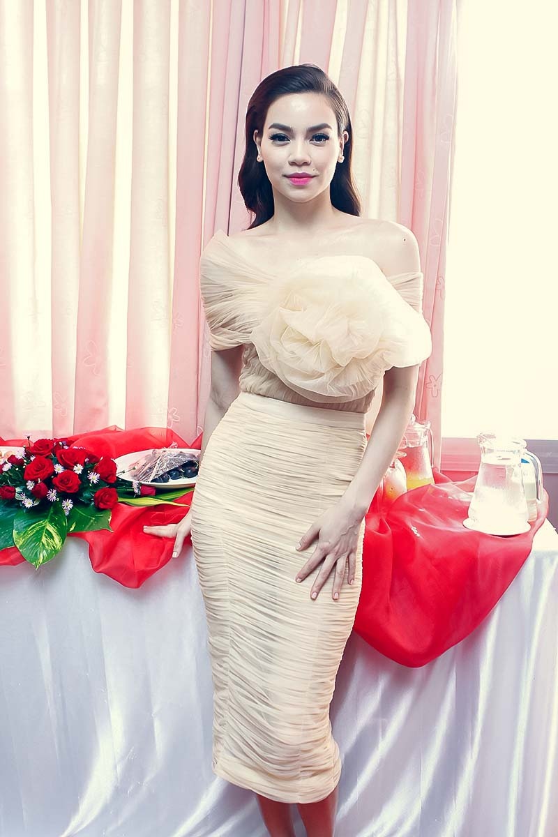 | Nữ ca sĩ 30 tuổi diện chiếc đầm lệch vai với điểm nhấn là bông hoa ở phần ngực, giúp cô khoe vẻ quyến rũ cùng những đường cắt cúp ôm sát cơ thể. |