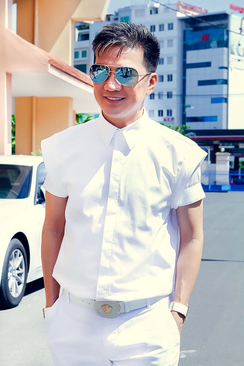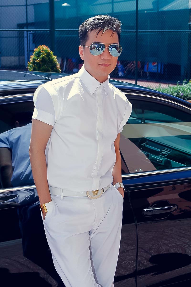 | Đàm Vĩnh Hưng diện nguyên cây trắng đi chấm thi X-Factor. |
