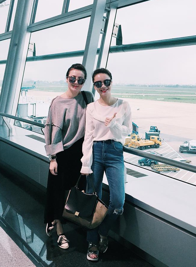 | Yến Trang - Yến Nhi ăn vận bụi phủi khi chuẩn bị đáp chuyến bay du lịch. "Én chị" nhẹ nhàng với áo voan kiểu cách, quần ôm xé gấu. Trong khi, em gái cá tính với áo thun phom rộng, quần lửng và giày bata. |