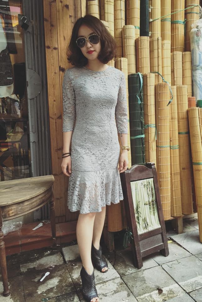 | Trên đường phố Hà thành, bà mẹ một con Mi Vân nổi bật nhờ đầm ren ôm sát, chất liệu và tông màu hợp với nét cổ điển, nữ tính của cựu hot girl. |