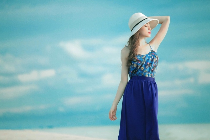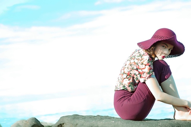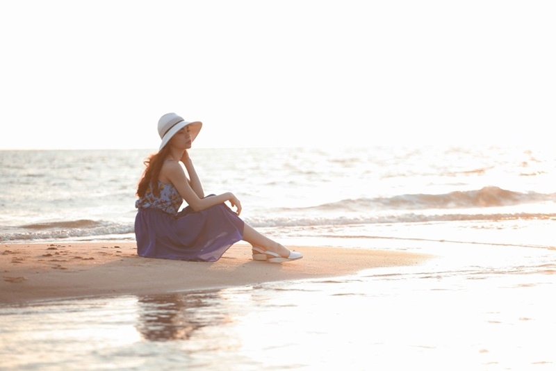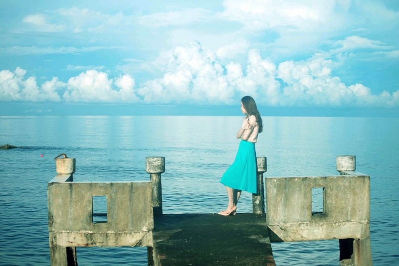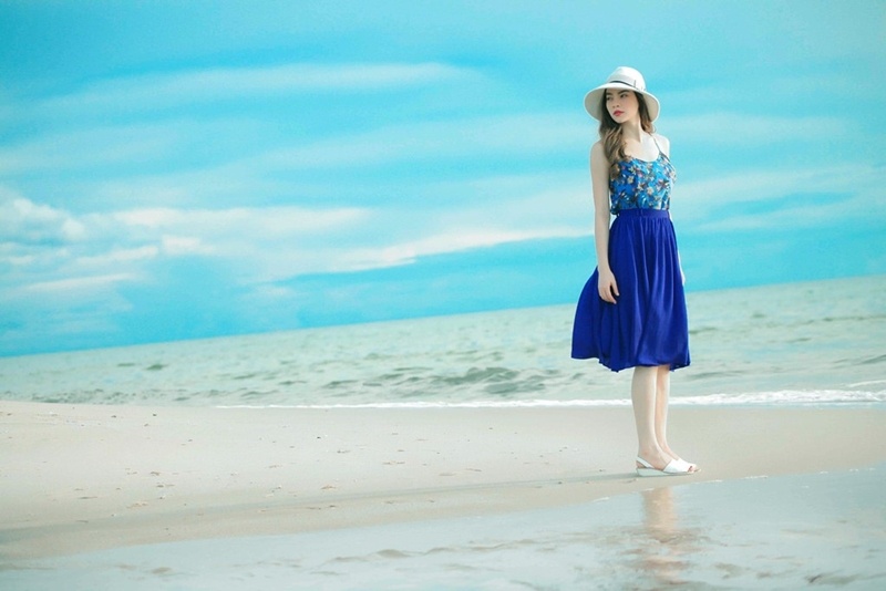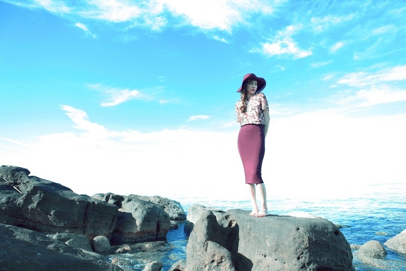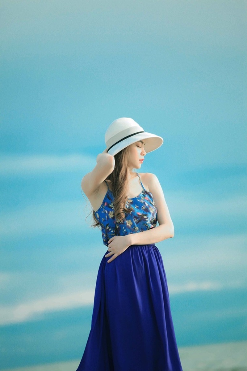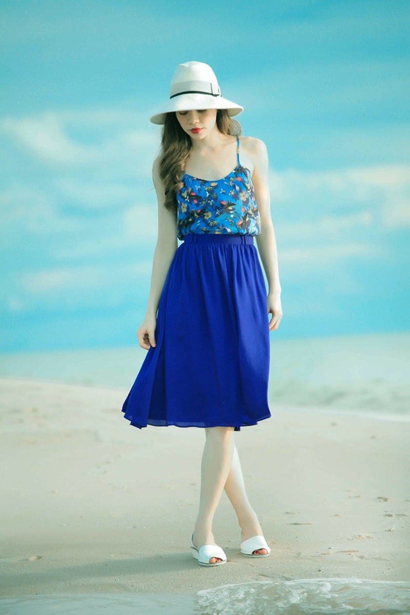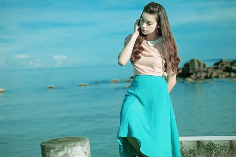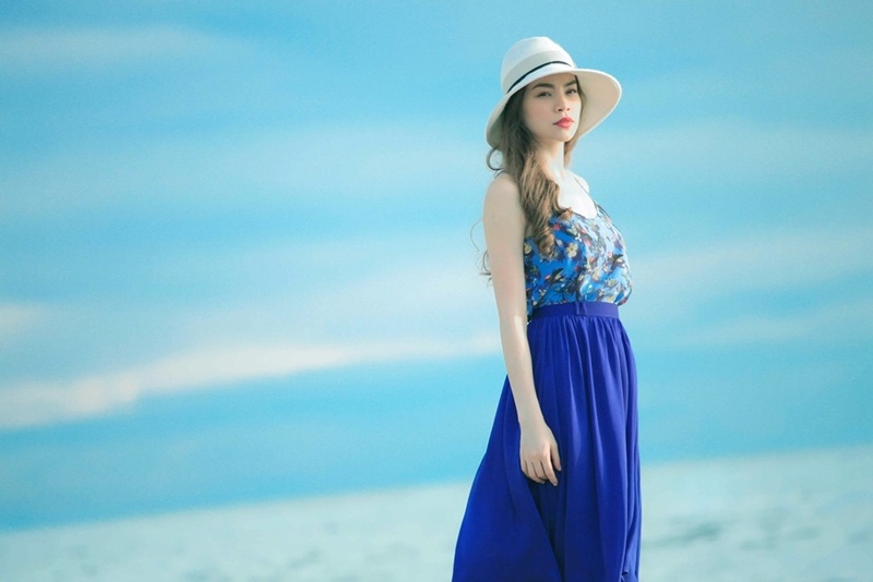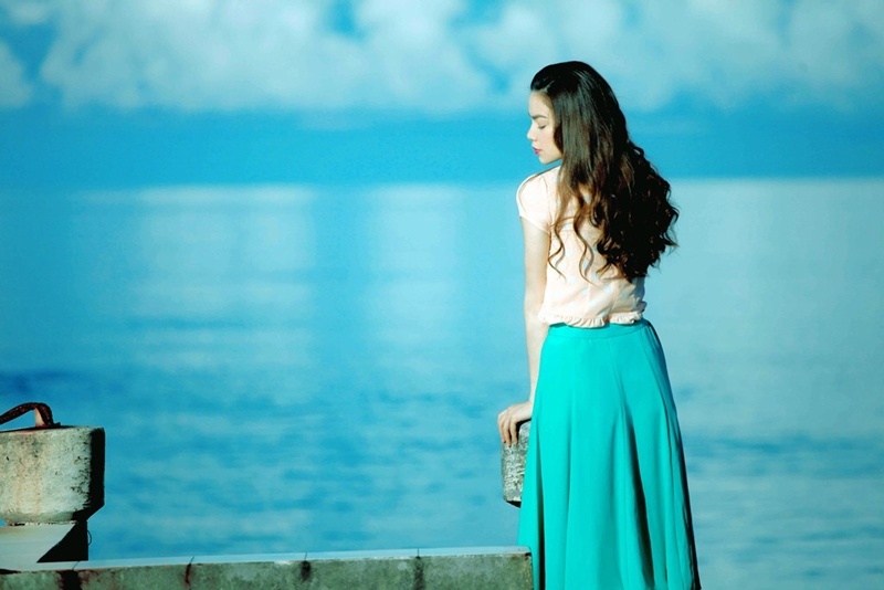 | Hình ảnh nữ ca sĩ đi dạo trên bờ biển không khác gì những bức tranh thiên nhiên hoang sơ.