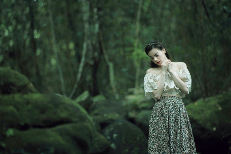 Hà Hồ mỏng manh tạo dáng giữa thiên nhiên