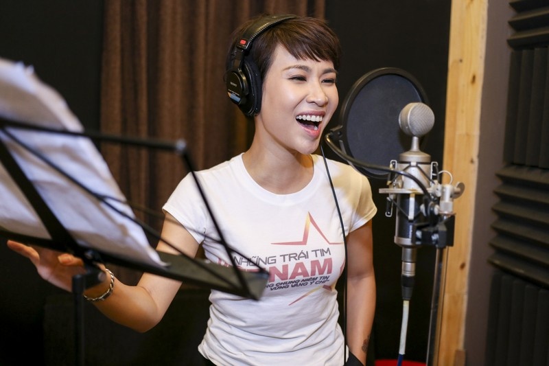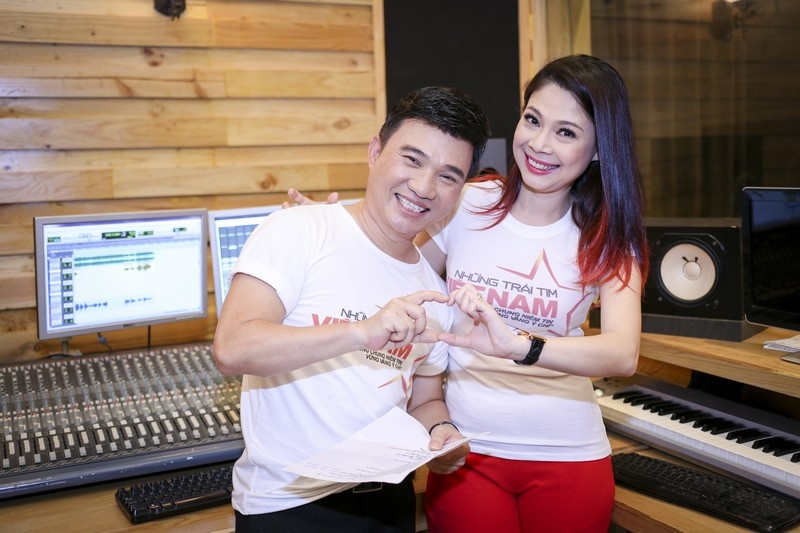 Hai nữ ca sĩ cùng nhiều gương mặt khác của Vpop cũng cùng nhau ghi âm ca khúc "Những trái tim Việt Nam".