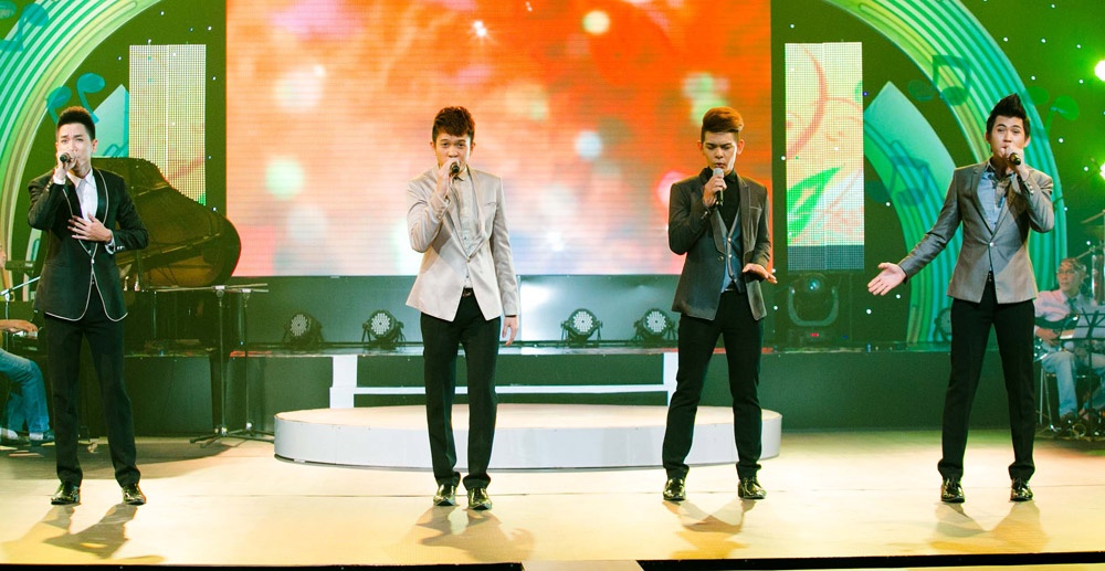 | Nhóm nhạc V.Music thể hiện hai ca khúc Xinh tươi Việt Nam và Cuộc sống muôn màu. |