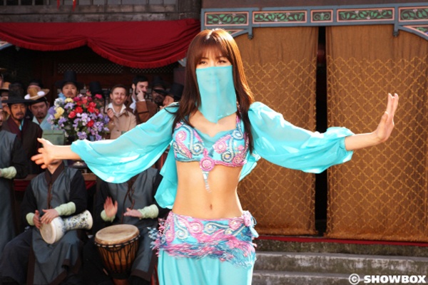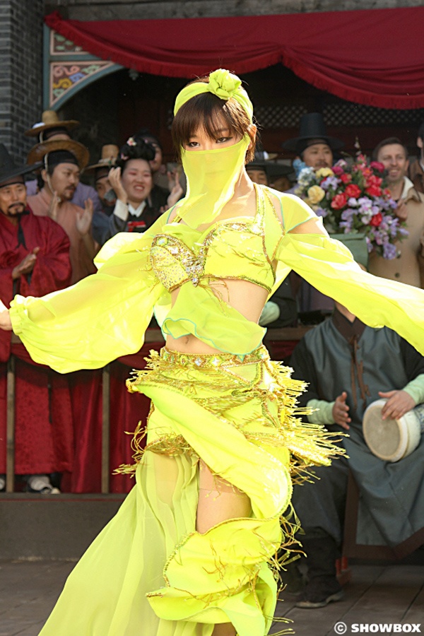 | Tác phẩm điện ảnh mang màu sắc hành động, cổ trang The Huntresses vừa tung ra những hình ảnh mới của 3 diễn viên chính: Ha Ji Won, Kang Ye Won và Son Ga In – ca sĩ kiêm diễn viên thần tượng. Chùm ảnh mới lấy từ một cảnh quay bộ ba phải đột nhập vào một bữa tiệc, họ cải trang thành những vũ nữ múa bụng hấp dẫn. Đả nữ Ha Ji Won từng kinh qua nhiều vai diễn cũng chia sẻ: “Cảnh quay này sẽ khiến khán giả hài lòng”, nữ diễn viên Khu vườn bí mật gây ấn tượng bởi vòng 2 khá săn chắc. |