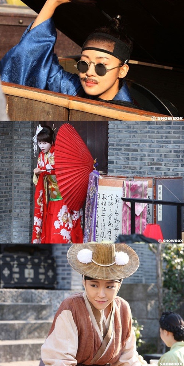 | Nhà sản xuất cũng tung ra những hình ảnh bộ ba phải hóa trang trong nhiều bối cảnh như làm đàn ông, gesha, tiều phu, gây thú vị cho người xem trước khi phim ra rạp vào ngày 29/1 tới. |