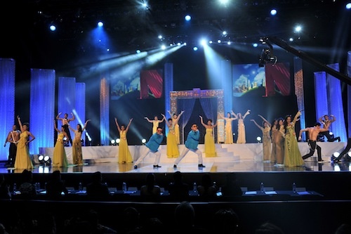 | Ryan và Hanson mở màn với thí sinh phu nhân trực tiếp thu hình trong đêm chung kết. |
