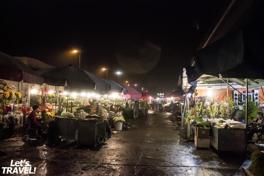 Đây là lần đầu tiên tôi tới khu chợ này, khi đến nơi đúng lúc đang đói tôi rẽ vào một quán ăn đêm ở cổng chợ. Sau khi ăn xong bát phở nóng hổi, thơm ngon ở cổng chợ với cái giá đêm rất phải chăng (30.000 đồng), tôi lại tràn đầy năng lượng.