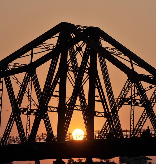 | Cây cầu Long Biên trên trăm tuổi. |