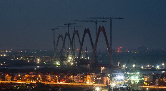 | Cây cầu Nhật Tân đang được xây dựng. |