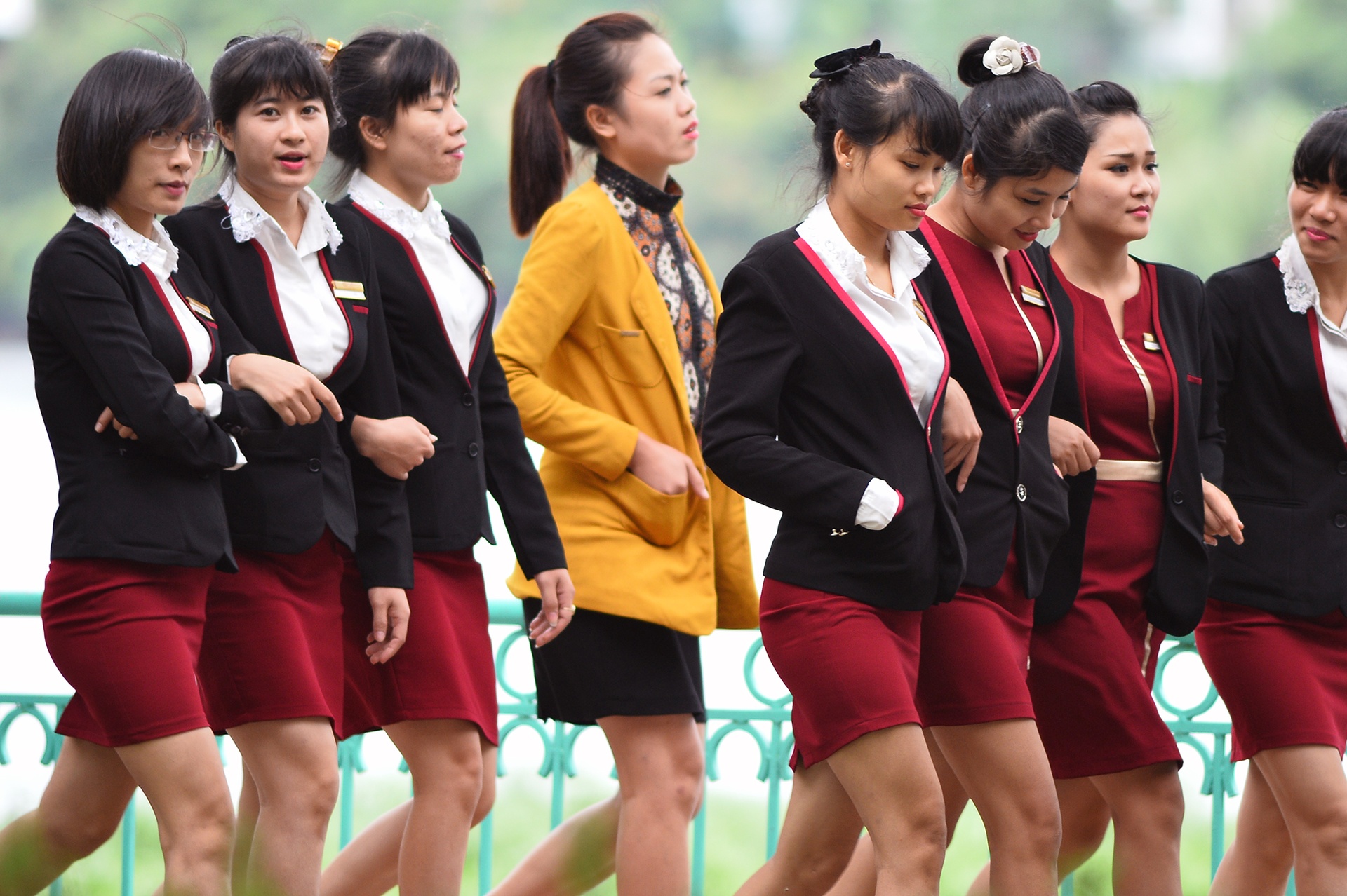 Nhóm khách du lịch của chị Sophie (đến từ Pháp) co ro đứng trong gió đợi xe ra sân bay Nội Bài về nước.