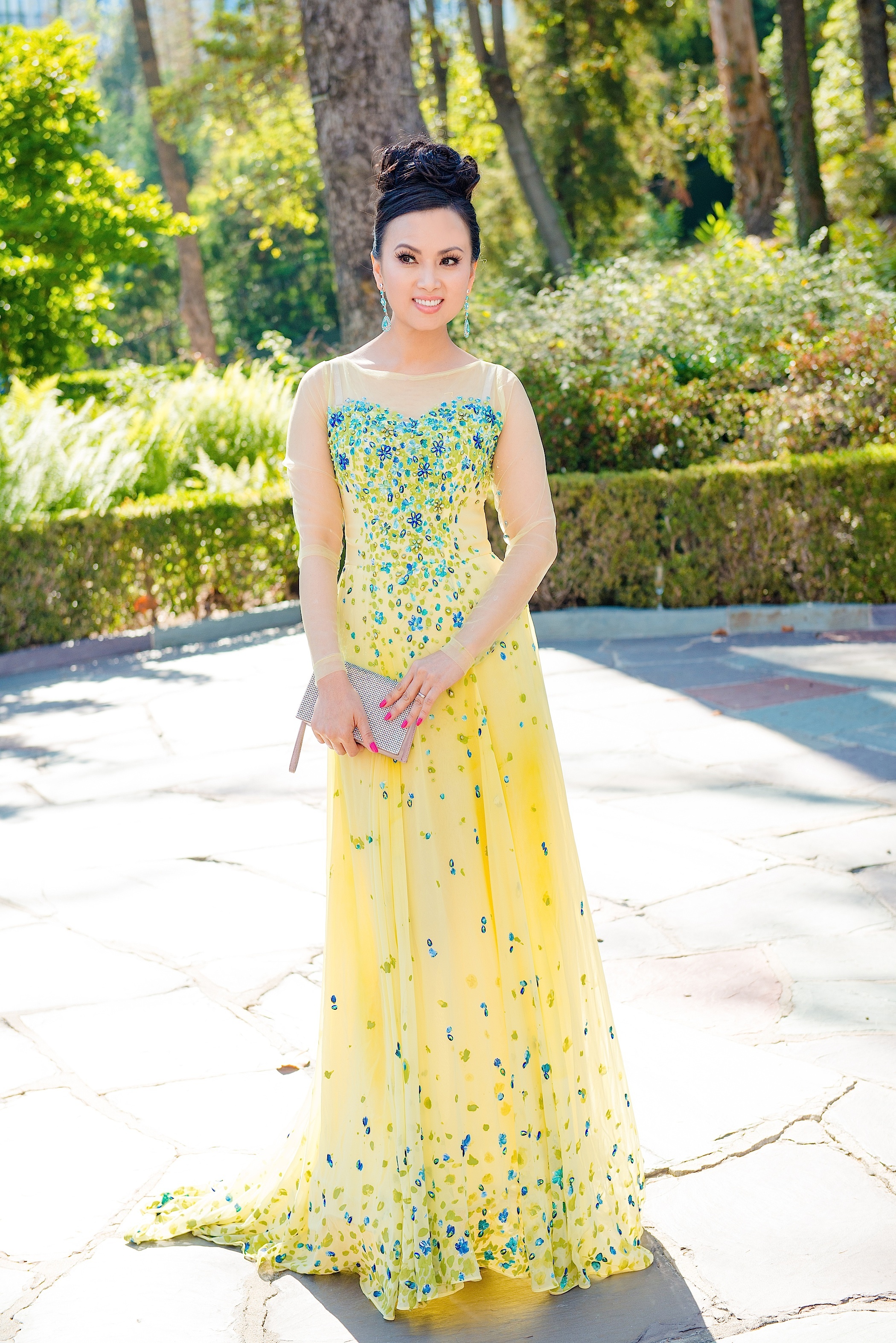 Em gái ca sĩ Cẩm Ly diện váy dạ hội nổi bật khi tham dự sự kiện trao giải Women In Film 2015 Crystal + Lucy Awards, diễn ra tại Los Angeles (Mỹ).