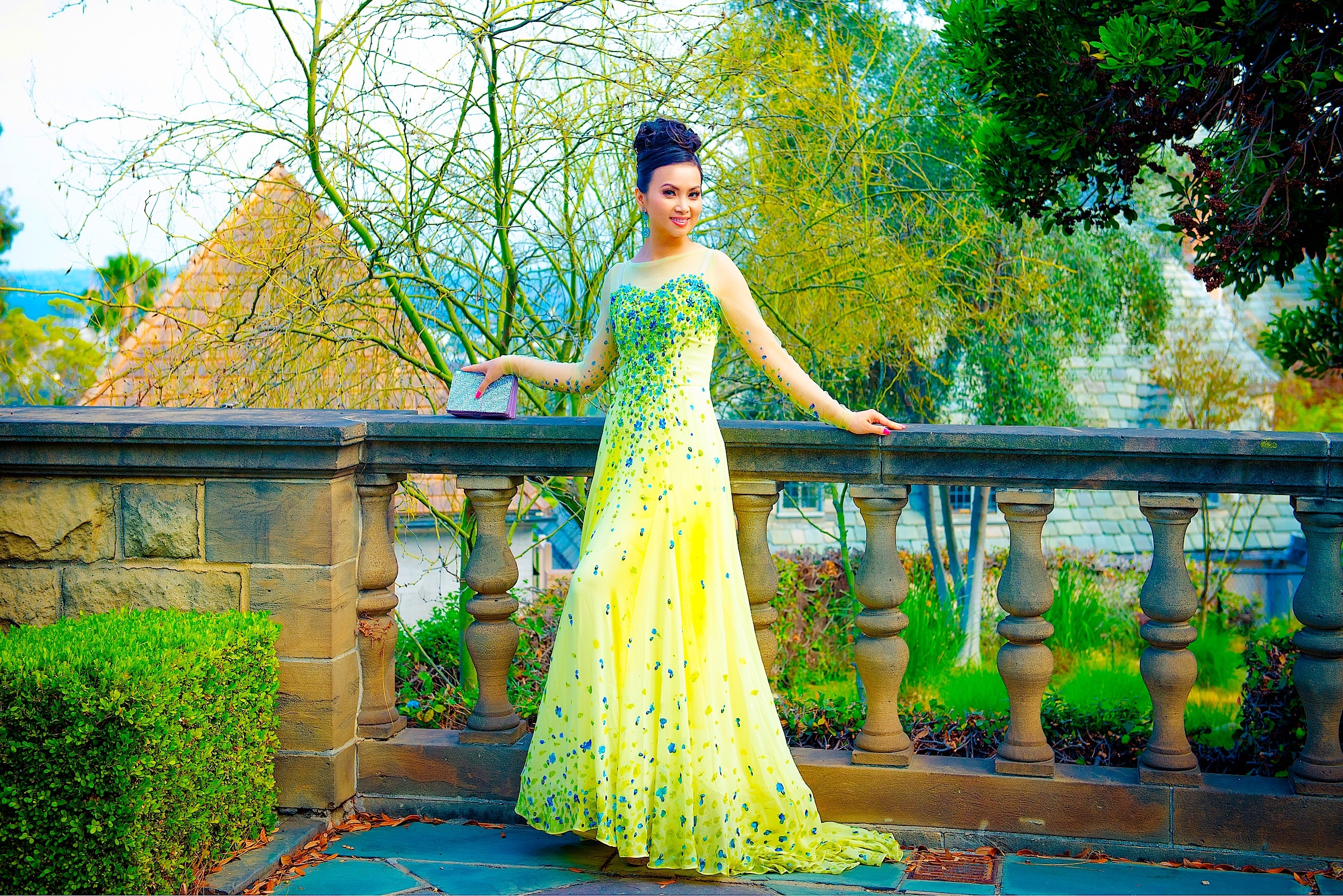 | Em gái ca sĩ Cẩm Ly nổi bật tại sự kiện khi diện bộ váy vàng lộng lẫy của nhà thiết kế Quỳnh Paris. |
