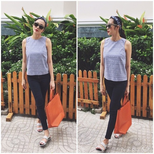| Lần đầu lộ diện sau nhiều tháng "nằm ổ" Tăng Thanh Hà gây sốt với hình ảnh thanh lịch và vóc dáng thon gọn. "Ngọc nữ" điện ảnh Việt ăn vận khá đơn giản với áo vải, quần bó sát. Phụ kiện dép bệt, túi xách, băng-đô làm điểm nhấn. |