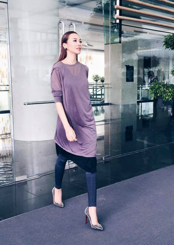 | Thanh Hằng có một tuần bận rộn với lịch casting Vietnam's Next Top Model tại Đà Nẵng, Cần Thơ. Chân dài làng mốt Việt chọn set đồ hiện đại với áo thun dáng dài, mix cùng quần leggings bó sát, giày hiệu đinh tán cá tính. |