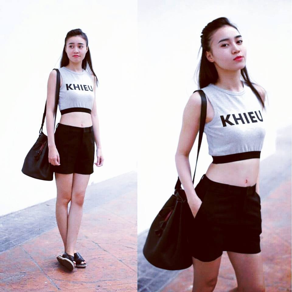 | Diễn viên Ninh Dương Lan Ngọc đổi phong cách nữ tính quen thuộc với trang phục do Trang Khiếu thiết kế. Quán quân Bước nhảy hoàn vũ 2015 tự tin khi ra phố với áo crop-top khoe eo khỏe khoắn. |