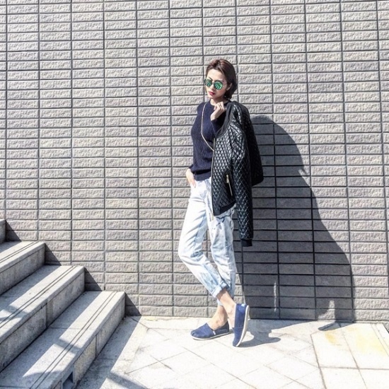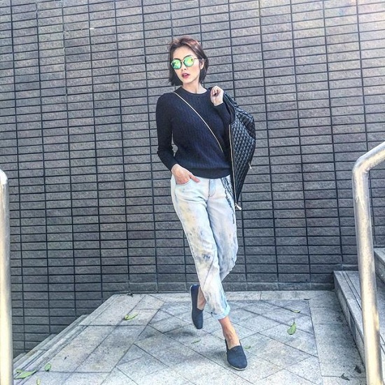 | Với phong cách đơn giản, trẻ trung và năng động nên Hà Tăng luôn chọn các item đơn giản như quần jeans, sweater phối hợp cùng áo khoác da đặc trưng của mùa thu đông. Ngoài ra, cô cũng chứng tỏ sự sành điệu trong phong cách khi chọn mắt kính tráng gương và túi đeo chéo. Một set đồ đơn giản: áo pull form rộng, áo vest cộc tay kết hợp với quần jeans lửng cùng giày đế bằng cũng khiến ngọc nữ rạng ngời, đầy sức sống. |