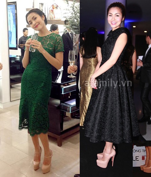 Đôi giày Louboutin thường được Hà Tăng sử dụng khi diện váy ren.