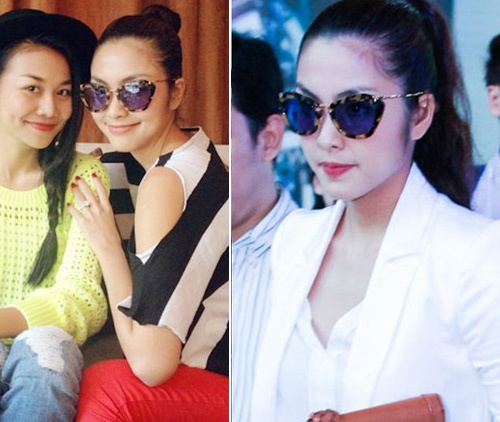 Chiếc kính Miu miu nổi tiếng cũng được Hà Tăng tận dụng trong mọi hoàn cảnh.