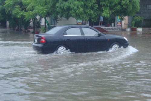 Tại TP Hà Tĩnh, mưa lớn đã khiến nhiều tuyến đường bị nhấn chìm, ngập sâu trong nước. Ngập úng nhiều nơi khiến giao thông đi lại hết sức khó khăn. Hàng loạt phương tiện không thể lưu thông.