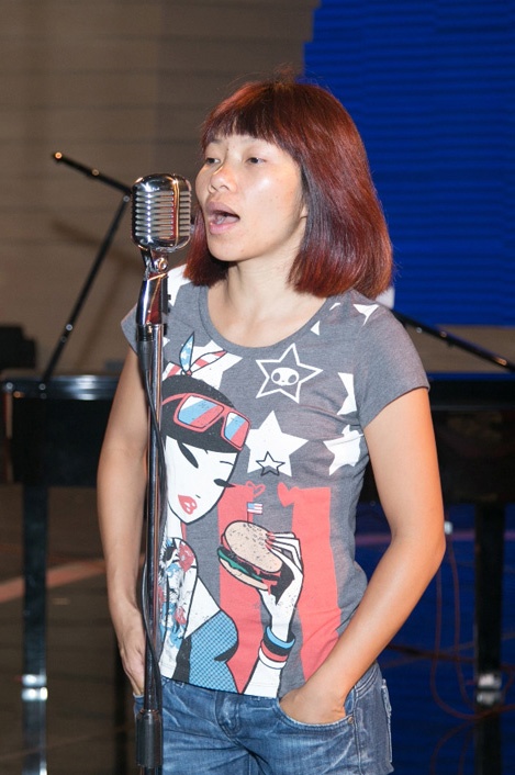 Hà Trần để mặt mộc đi tập nhạc