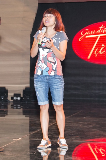 Diva nhạc nhẹ diện đồ theo phong cách trẻ trung, đơn giản, khác hẳn vẻ sang trọng khi bước lên sân khấu.