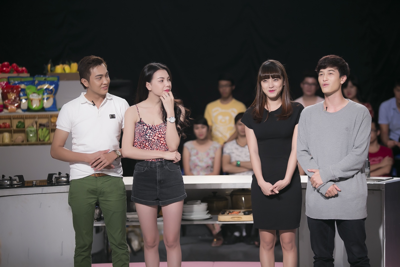 Hai cặp đôi chia sẻ cảm nghĩ với khán giả và ban giám khảo trước khi bước vào cuộc tranh tài.