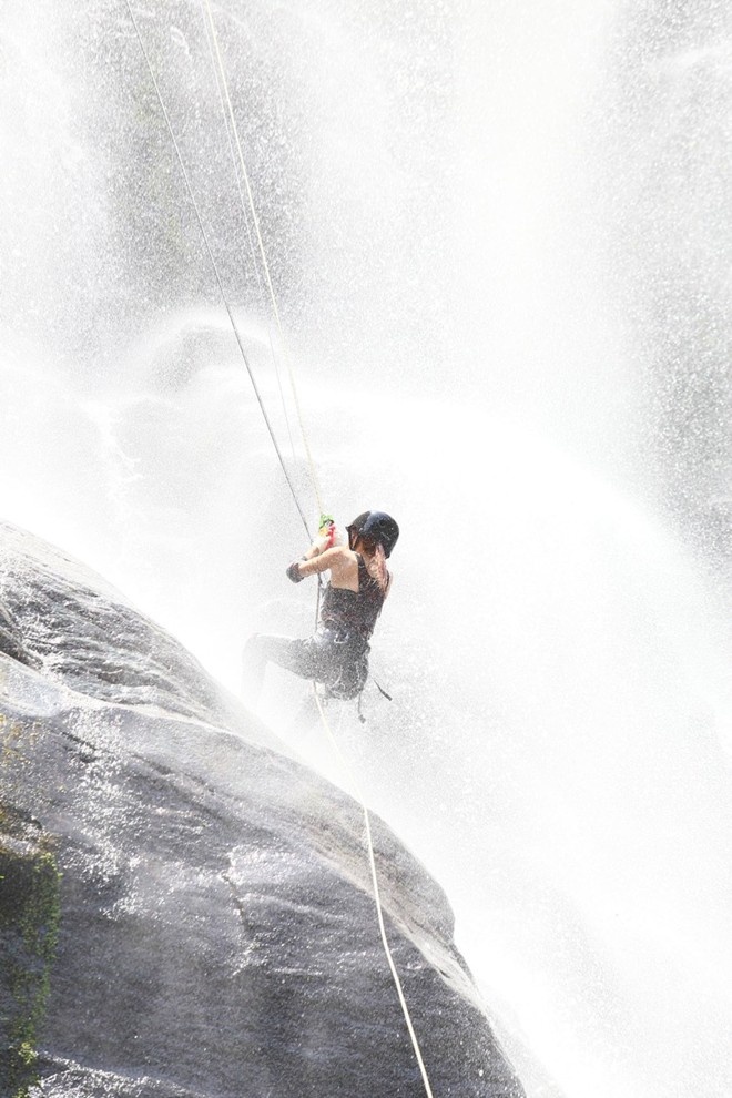 Với lựa chọn điểm đến là những nơi rừng núi, vùng sâu vùng xa, Cuộc đua kỳ thú năm nay liên tục "ném" các đội chơi vào những game thách thức lòng can đảm và thể lực. Ở Nghệ An, đó chính là thử thách vượt 100m thác Khe Kèm với nước đổ thẳng đứng từ độ cao 220m.