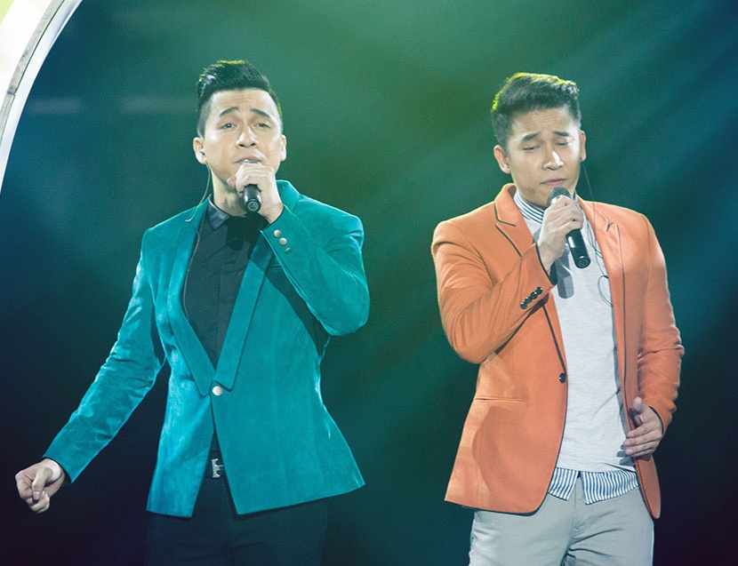 | Khán giả hâm mộ tại sân khấu đã hưởng ứng và hát theo các chàng trai. Không chỉ sở hữu nhiều bản hit được người hâm mộ thuộc nằm lòng, Lê Hoàng và Tiến Dũng còn đầu tư trang phục lịch lãm, sang trọng trong các tiết mục. |