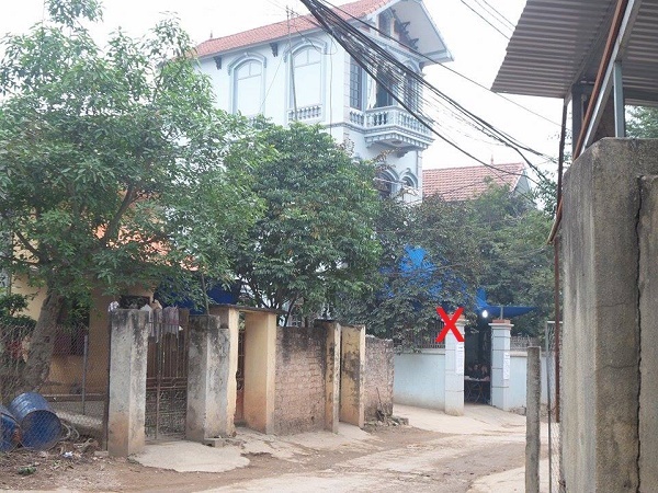 | Căn nhà cao tầng (đánh dấu X) - nơi xảy ra vụ việc thương tâm. |