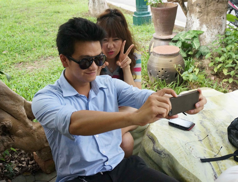 | Trong lúc chờ đợi, Đoàn Mạnh tranh thủ "tự sướng" với Hari. |