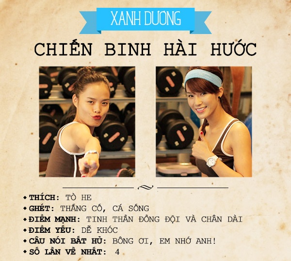 | Có số lần về nhất kém đội Đỏ (5 lần) nhưng 2 cô gái đội Xanh Dương lại có chiến thắng quan trọng nhất - chiến thắng ở chặng cuối cùng. |
