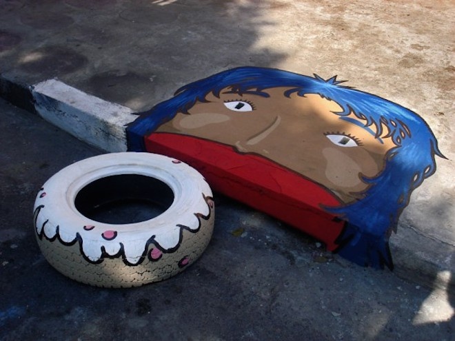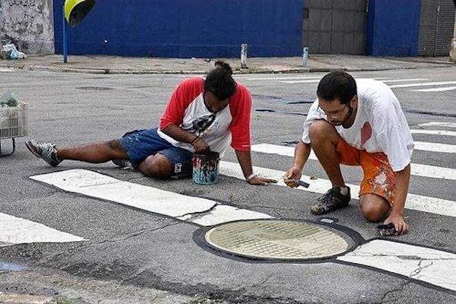 Anderson Augusto và Leonardo Delafuente đã thay đổi diện mạo của đường phố khi biến các nắp cống, cột đèn, đường đi... trở thành các nhân vật hoạt hình, thức ăn ngộ nghĩnh.