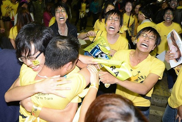 Nhiều người vẫn còn nhớ hình ảnh các fan nam của nhóm nhạc T-ara ôm nhau khóc nức nở vì được chứng kiến thần tượng bằng xương bằng thịt tại Kpop Festival 2012. Hình ảnh này đã được lan truyền trên khắp mạng xã hội và trở thành tâm điểm bàn tán của dư luận.![]() |