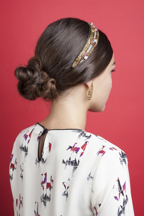 Thông thường tóc búi thấp hay mang lại cảm giác già dặn, nhàm chán. Tuy nhiên, khi bạn kết hợp với cách thắt nút và phụ kiện như băng đô thì đây sẽ là gợi ý để tỏa sáng cho những buổi tiệc.