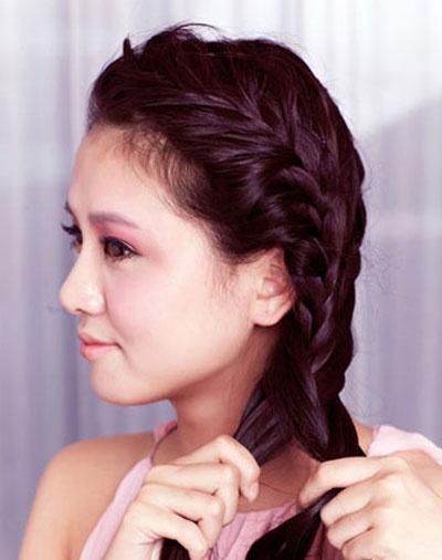 Lưu ý khi tết tóc, kéo tóc lệch về cùng 1 bên.