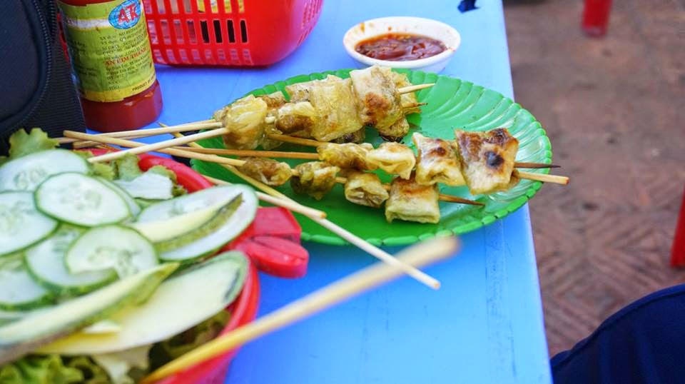 | Trời cũng dần tối, tôi ghé vào một quán bánh canh và bún ven đường. Giá mỗi tô là 10.000 đồng. Tôi ăn hết 3 tô. Sau đó, tôi tiếp tục ra biển, làm đầy bao tử bằng món thịt nướng xiên, ăn kèm với rau và xoài sống, giá mỗi xiên tầm 3.000-5.000 đồng. Mùi thịt nướng xen lẫn cái se lạnh cùng từng cơn gió biển tạo cho tôi một cảm xúc rất lạ, vừa nhẹ nhàng vừa sâu lắng. |