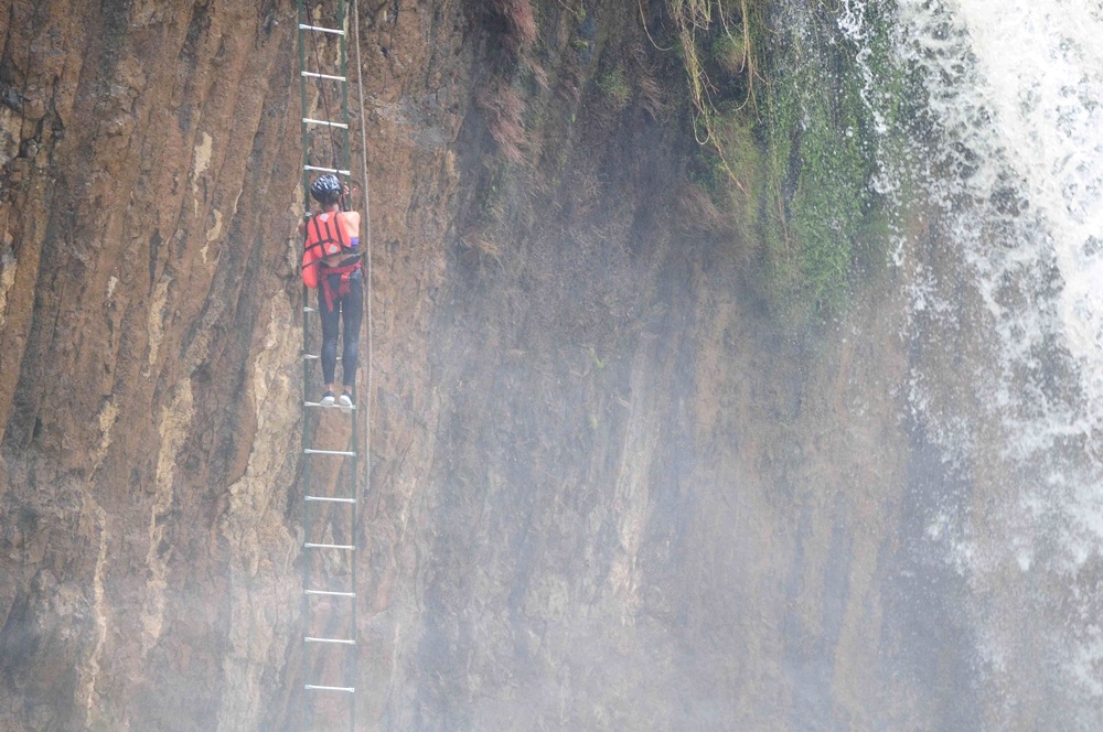 Khốc liệt chinh phục thác nước cao 30m trong mưa