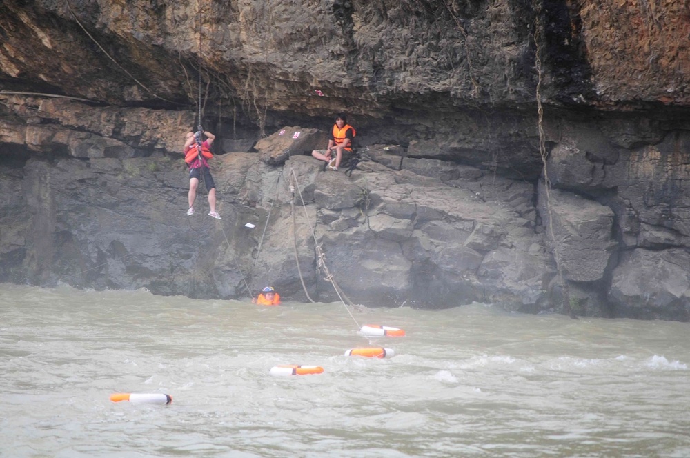 | Tiếp tục đu đây từ đỉnh thác Dray Sap. |