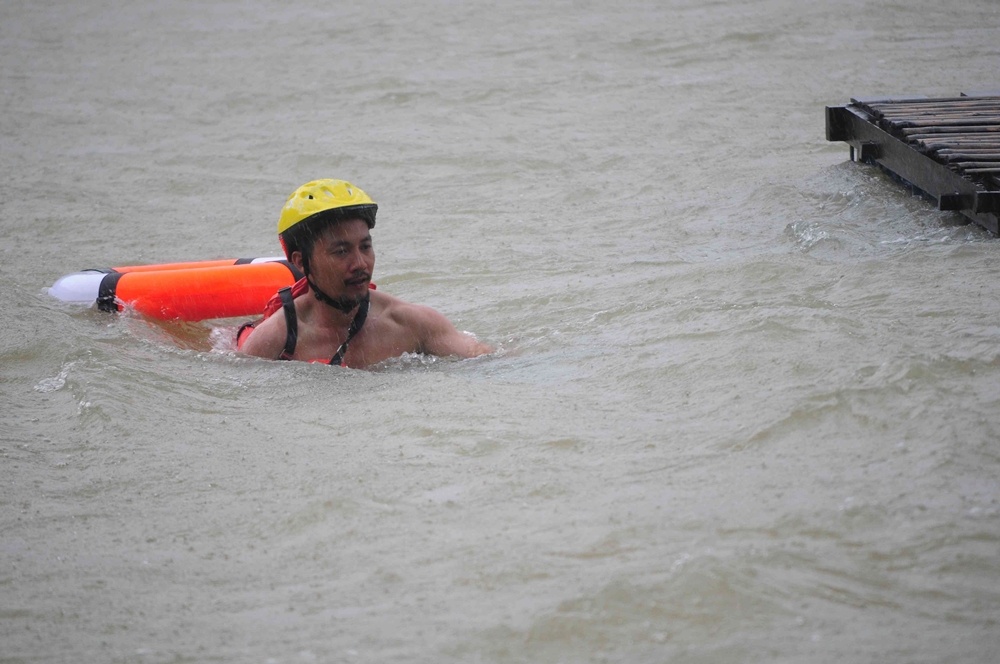 Hình ảnh cô gái xinh đẹp đu mình trên từng bậc của thang dây giữa những bọt nước trắng xóa tung tóe khiến người xem càng thêm nể phục tinh thần và hoàn toàn gạt bỏ những định kiến ban đầu về những chân dài “yếu đuối” trong cuộc đua.
