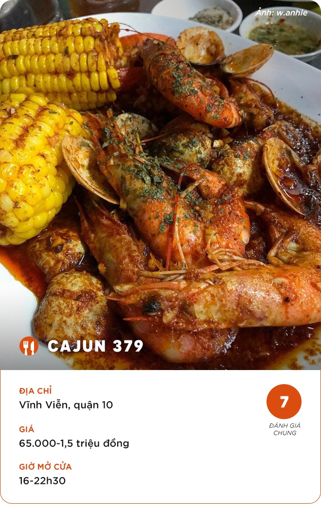401phin: "Nằm cạnh chợ Tân Định, nhà hàng bán hải sản chủ yếu theo kiểu cajun cổ điển. Cá, bò, hàu và khoai tây chiên là những món tôi yêu thích".