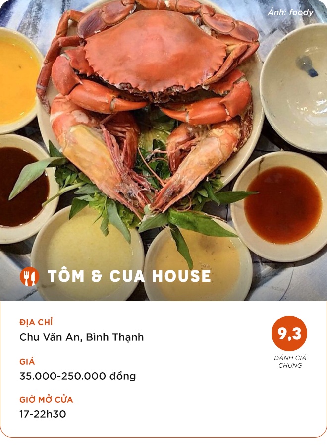 Hải sản tại đây có giá tầm trung. Bạn có thể đặt ship tận nơi nhum biển Phú Quốc (35.000 đồng/con), sò điệp Nhật (85.000 đồng/6 con), hàu sữa (12.000 đồng/con), ngao 2 cồi (85.000 đồng/phần 6-8 con). Các món ngao, sò dẹo đồng giá 75.000 đồng cũng là gợi ý hấp dẫn không kém. Cơm chiên cua, miến xào hải sản, lẩu uyên ương là những món ăn no giúp bạn ấm bụng.
